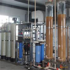 第二种:前处理与第二种方法一样使用反渗透装置,只是后面使用的混床采用EDI连续除盐膜块代替,这样就不用酸碱再生树脂,而是用电再生。这就彻底使整个过程无污染了,经过处理后的水质可达到15M以上。但这这种方法的前期投资比较多,运行成本低。