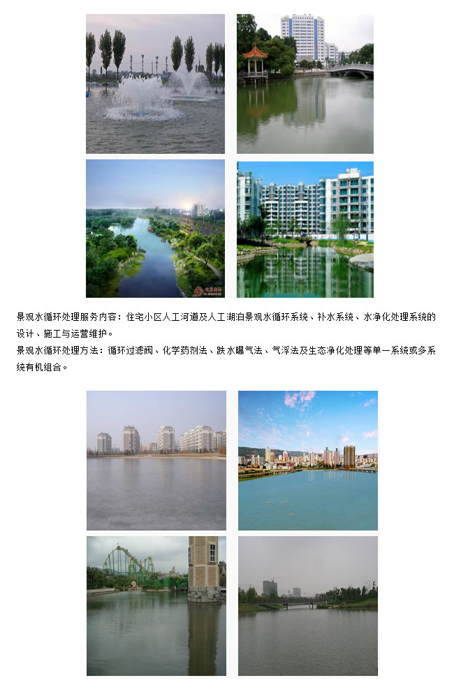 景观水循环处理设备景观水循环净化处理领域:住宅小区人工河道及人工湖泊景观水的循环净化处理设备工程